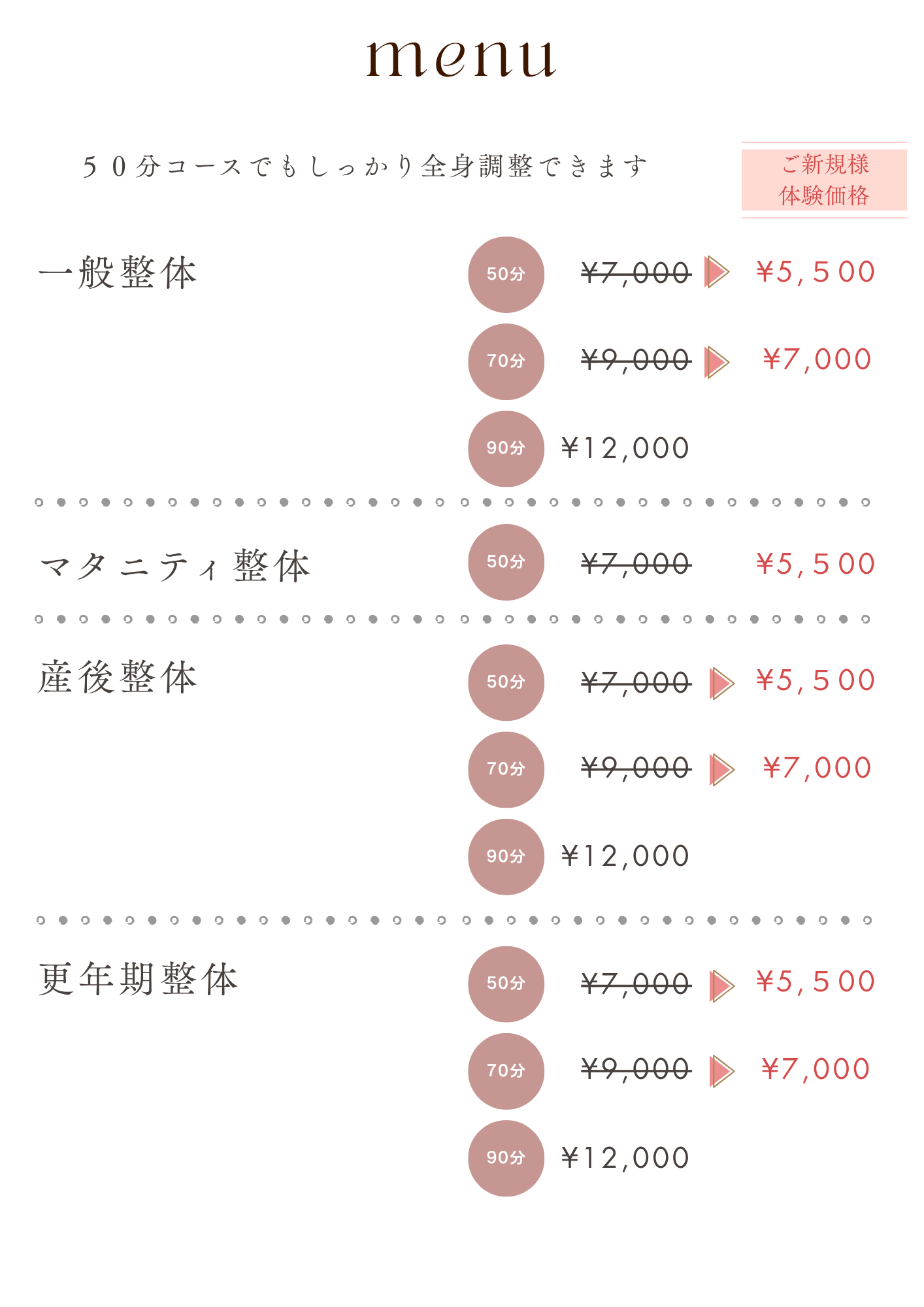 料金 / メニュー