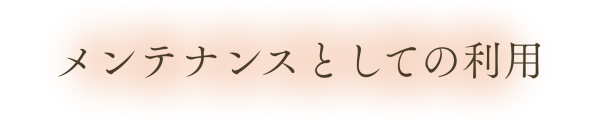 髪のメンテナンス、歯のメンテナンスなど、今はメンテナンスの時代です。お客様のお悩み解決後、痛みや不調が再発しない為におからだのメンテナンスとしてご利用いただけます。