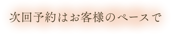 お客様のお身体の状態や、生活スタイルから次回施術の目安はお伝えいたしますが、後日ゆっくりお身体と相談して決めていただければと思います。もちろん、お帰りの際にご予約も可能です。