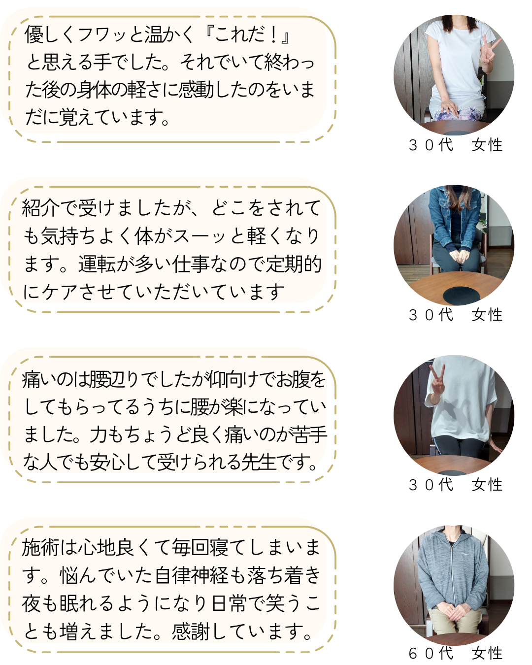 ※お客様の感想で、施術の効果、効能を保証するものではありません